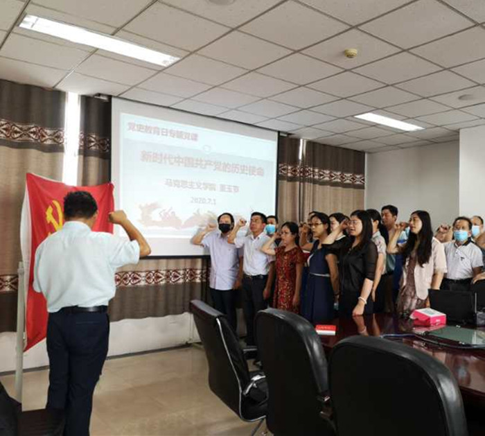 值此中国共产党99岁生日之际,7月1日上午,马克思主义学院党总支在新安楼八楼会议室开展重温入党誓词、上专题党课活动。活动由学院党总支书记胡卿主持。