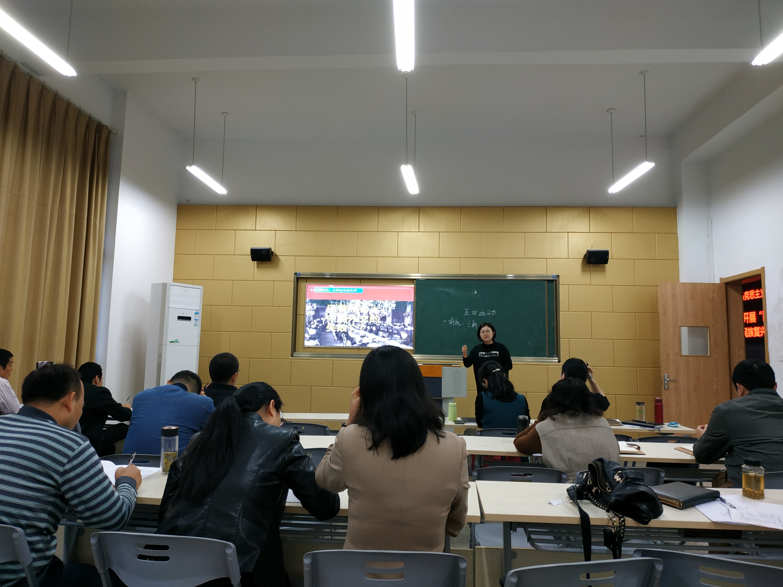 为推动思想政治理论课教育教学改革,促进教师间课堂教学互学互鉴,发挥优秀教师教学的示范带动作用,11月18日下午,马克思主义学院在学院176教室举行了教学示范观摩活动。本次示范教学由凡樊老师和许明华老师讲授。院长董玉节及部分教师参加了本次课程观摩。