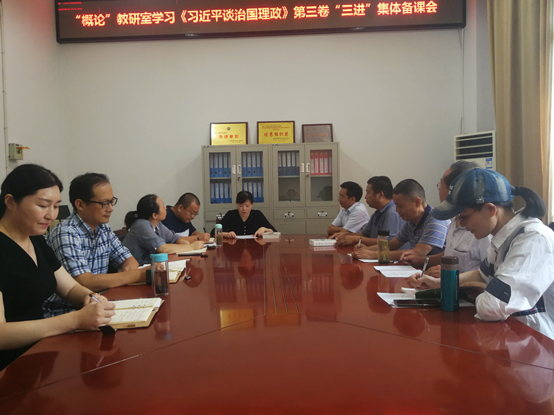 董玉节院长高度赞扬此次集体备课恰逢其时。他要求,此次集体备课要在三方面下功夫:首先,要在学好上下功夫。“概论”教研室全体教师必须读原著、学原文、悟原理,只有老师自己吃透,“三进”才能取得切实的效果;其次,要在转化上下功夫。《习近平谈治国理政》第三卷是落实立德树人根本任务的最新教材,要及时有效地将教材体系转化为教学体系;再次,要在结合上下功夫。“三进”工作要结合学生实际、结合课程实际以及结合每位老师自身实际,这样才能有的放矢,取得实效。