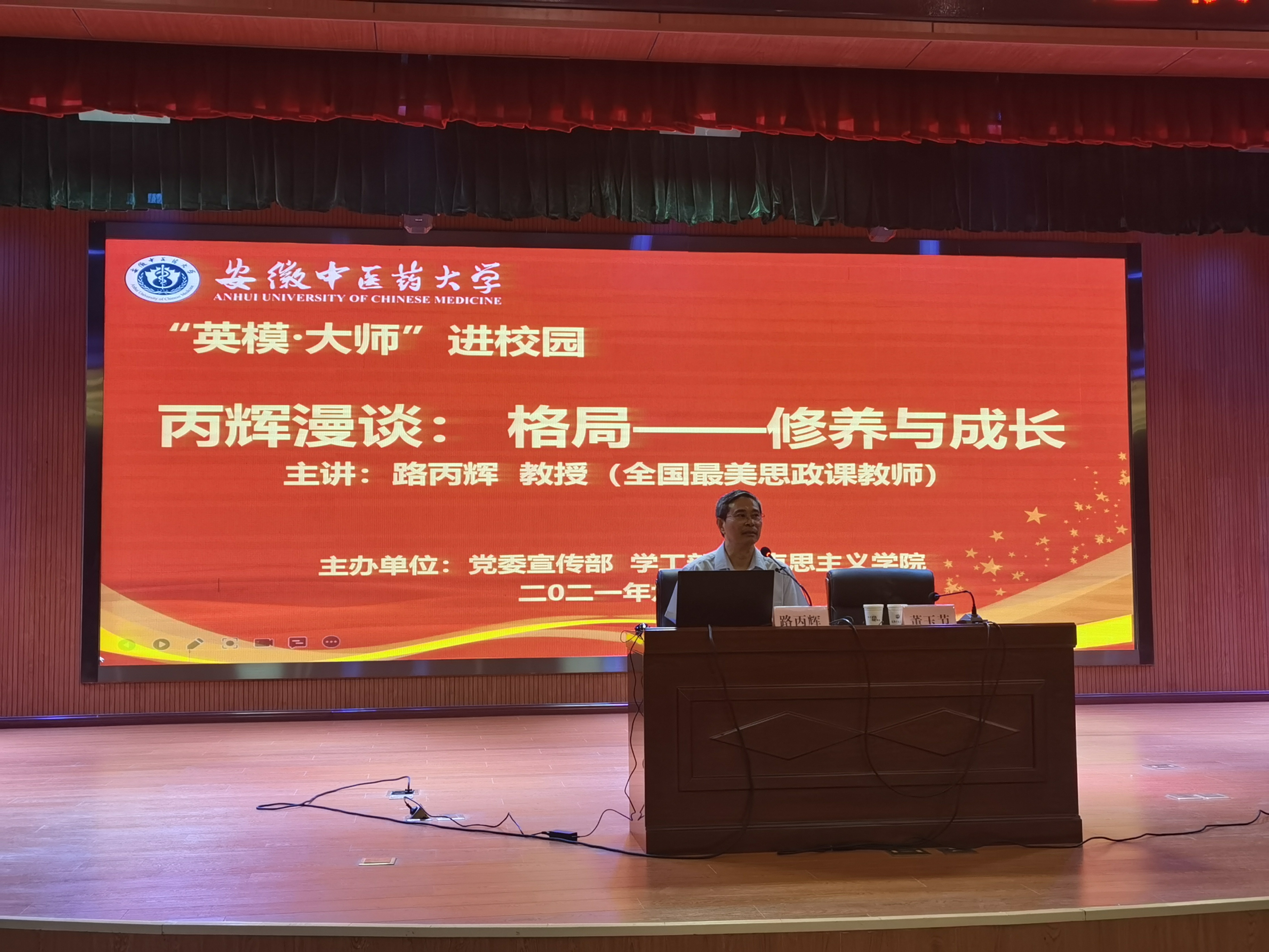 6月2日下午,由学校党委宣传部、学工部、马克思主义学院联合举办的“英模·大师”进校园专题报告会在图书馆报告厅举行。全国最美思政课教师、全国师德标兵、安徽师范大学路丙辉教授应邀为我校师生作题为“格局——修养与成长”的报告。报告会前,学校党委书记王先俊亲切接见了路丙辉教授。学校党委常委、宣传部长吴达武,各学院及有关部门负责人,各学院的学生代表、全体思政课教师、全体专兼职辅导员共同聆听了报告。报告会由马克思主义学院院长董玉节主持。