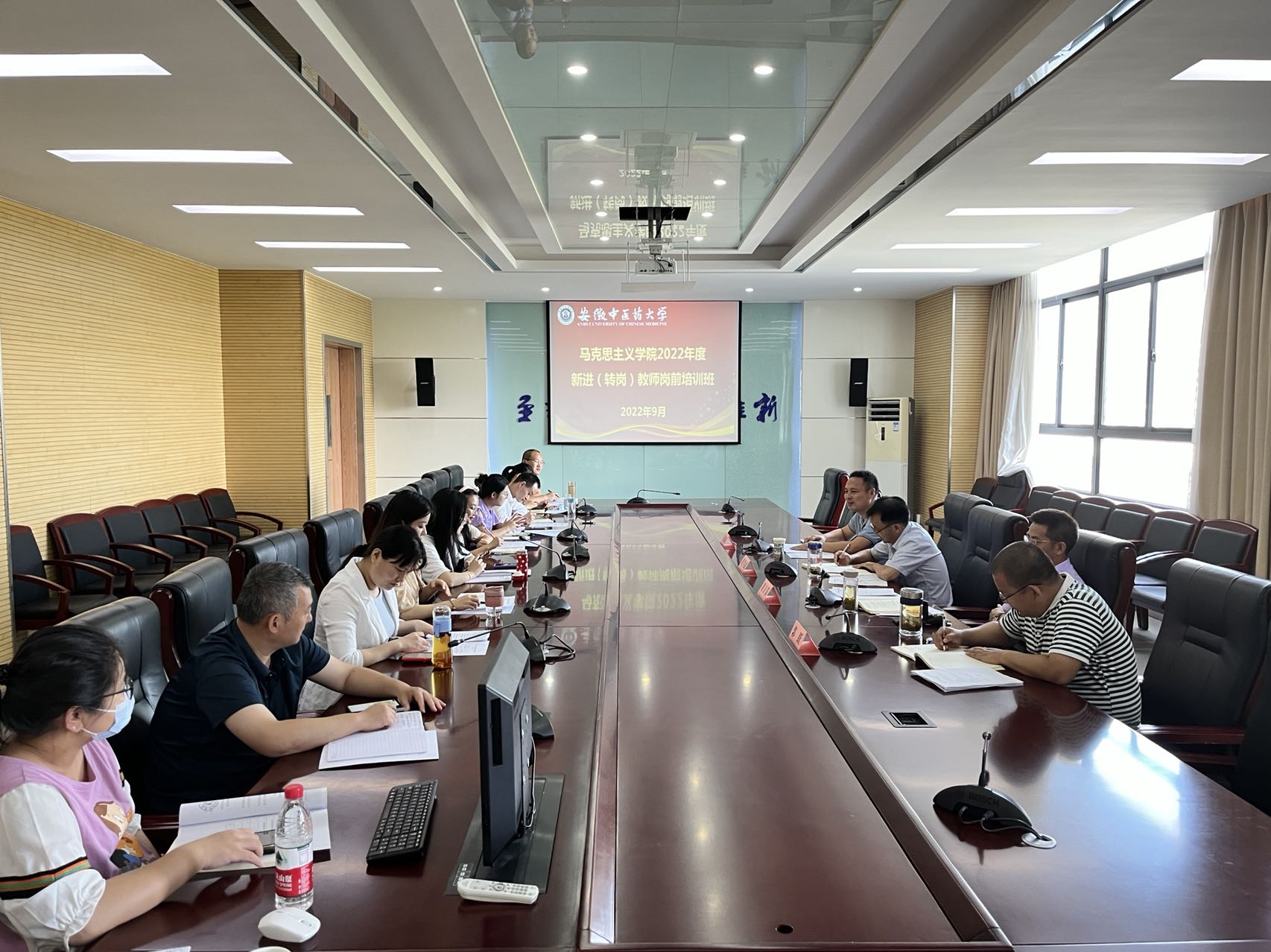 9月7日下午,为进一步提高新进(转岗)教师教学科研能力,帮助新进(转岗)教师尽快胜任思政课教师的岗位要求,我院举办新进(转岗)教师专题培训班。人事处副处长唐闻新,学院党总支书记黄学武、院长董玉节出席,学院14位新进(转岗)教师参加培训班。开班仪式由学院副院长郭跃主持。