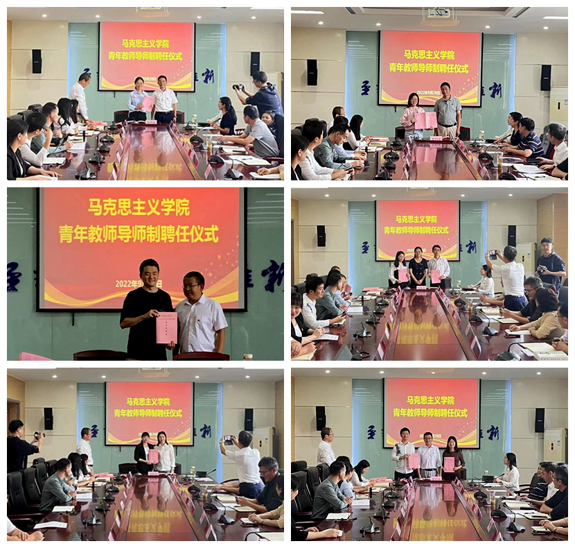 签约仪式上,郭跃首先宣读《马克思主义学院关于聘尤吾兵等同志为2021年青年导师的通知》《马克思主义学院关于聘杨立红等同志为2022年青年导师的通知》。14位青年教师分别与各自导师在签约席共同签订指导责任书并合影留念。