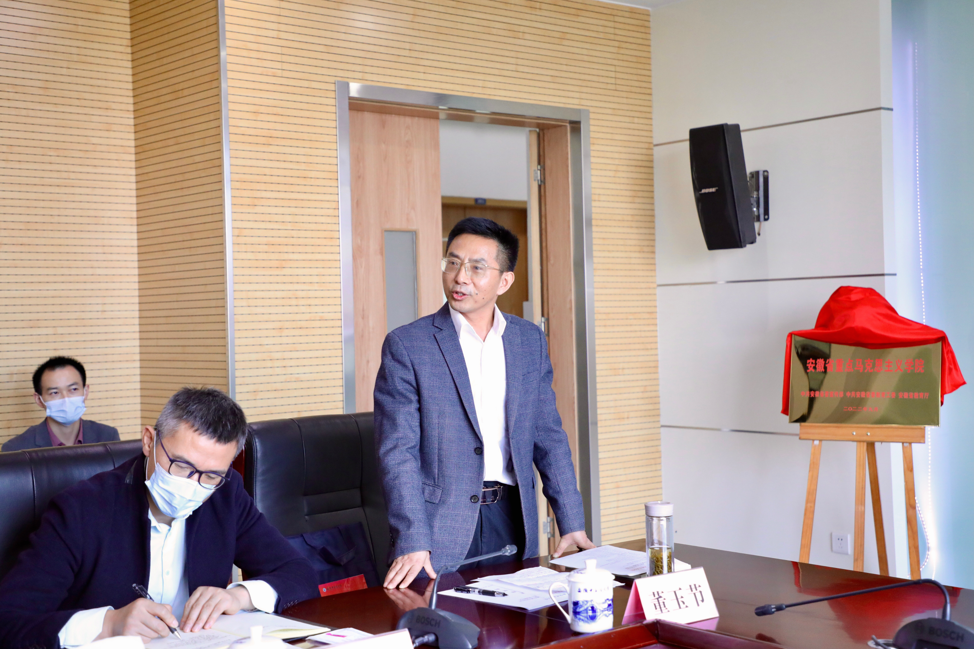会上,唐国富首先宣读了《中共安徽省委宣传部 中共安徽省委教育工委安徽省教育厅关于公布安徽省第三批重点马克思主义学院名单的通知》文件,我校马克思主义学院成功入选。