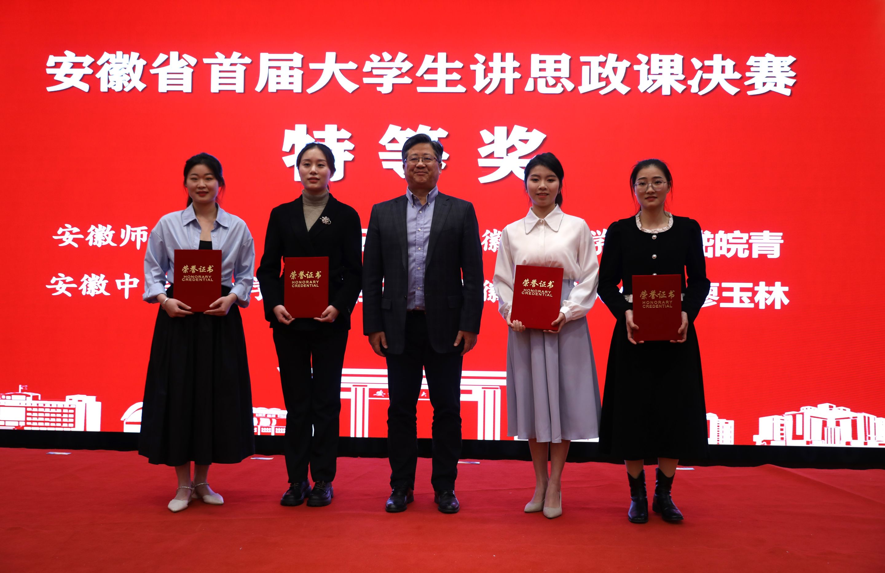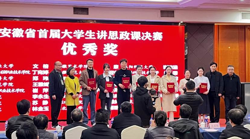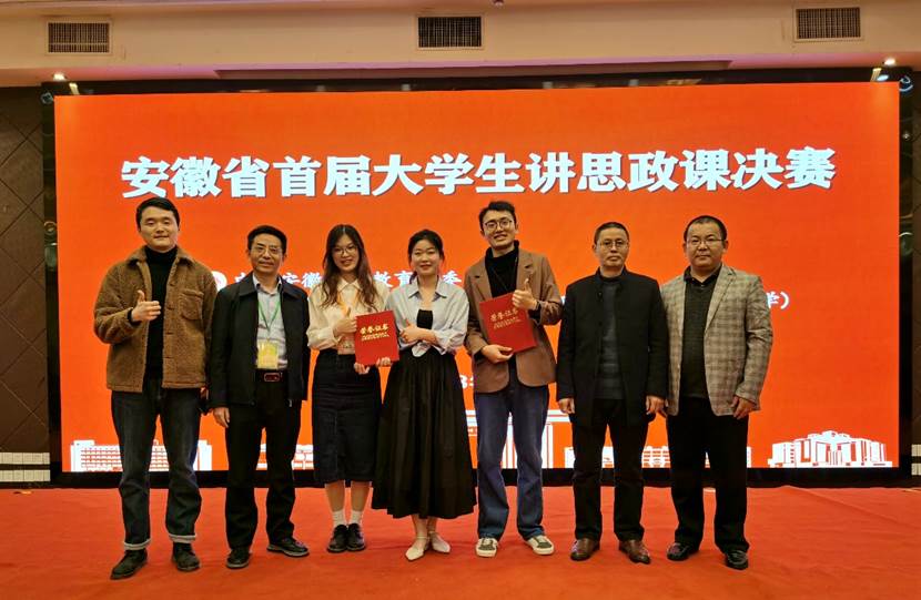 3月4日,由中共安徽省委教育工委主办,教育部高校思想政治工作队伍培训研修中心(安徽师范大学)、安徽师范大学马克思主义学院承办的安徽省首届大学生讲思政课决赛在芜湖举行。经过片区赛脱颖而出的43所高校的76组选手参加决赛。经过激烈角逐,本次比赛共产生特等奖4名、一等奖8名、二等奖15名、优秀奖23名、入围奖23名。我校共有2组选手参加决赛,宋帮玉、汪梦琴同学斩获特等奖,章国栋同学获得优秀奖。