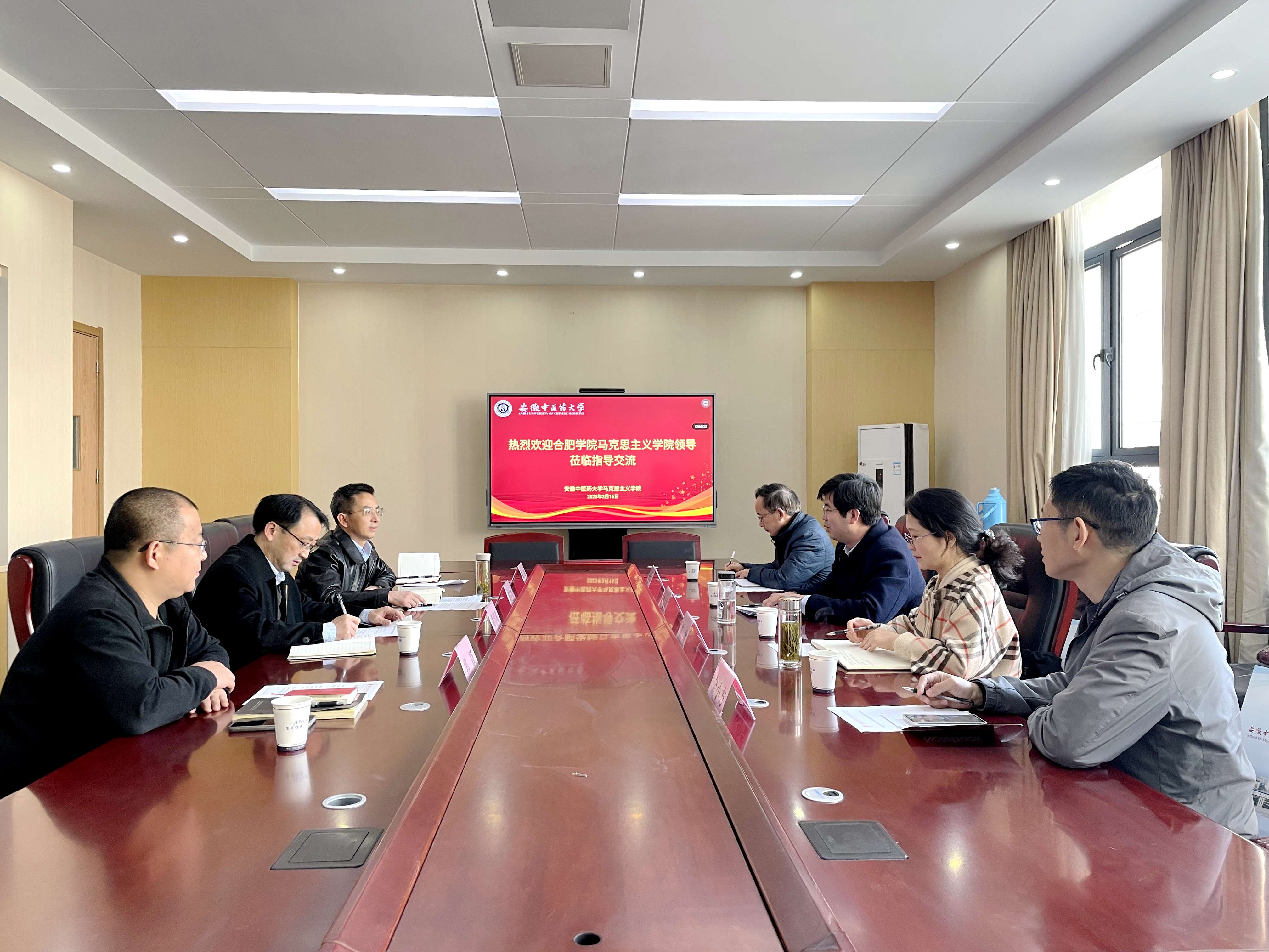 3月16日上午,合肥学院马克思主义学院院长陈志超,副院长苏冰、马保卫一行来我院调研马克思主义理论学科硕士点申报工作。学院党总支书记黄学武,院长董玉节,副院长郭跃参与座谈交流。会议由黄学武主持。
