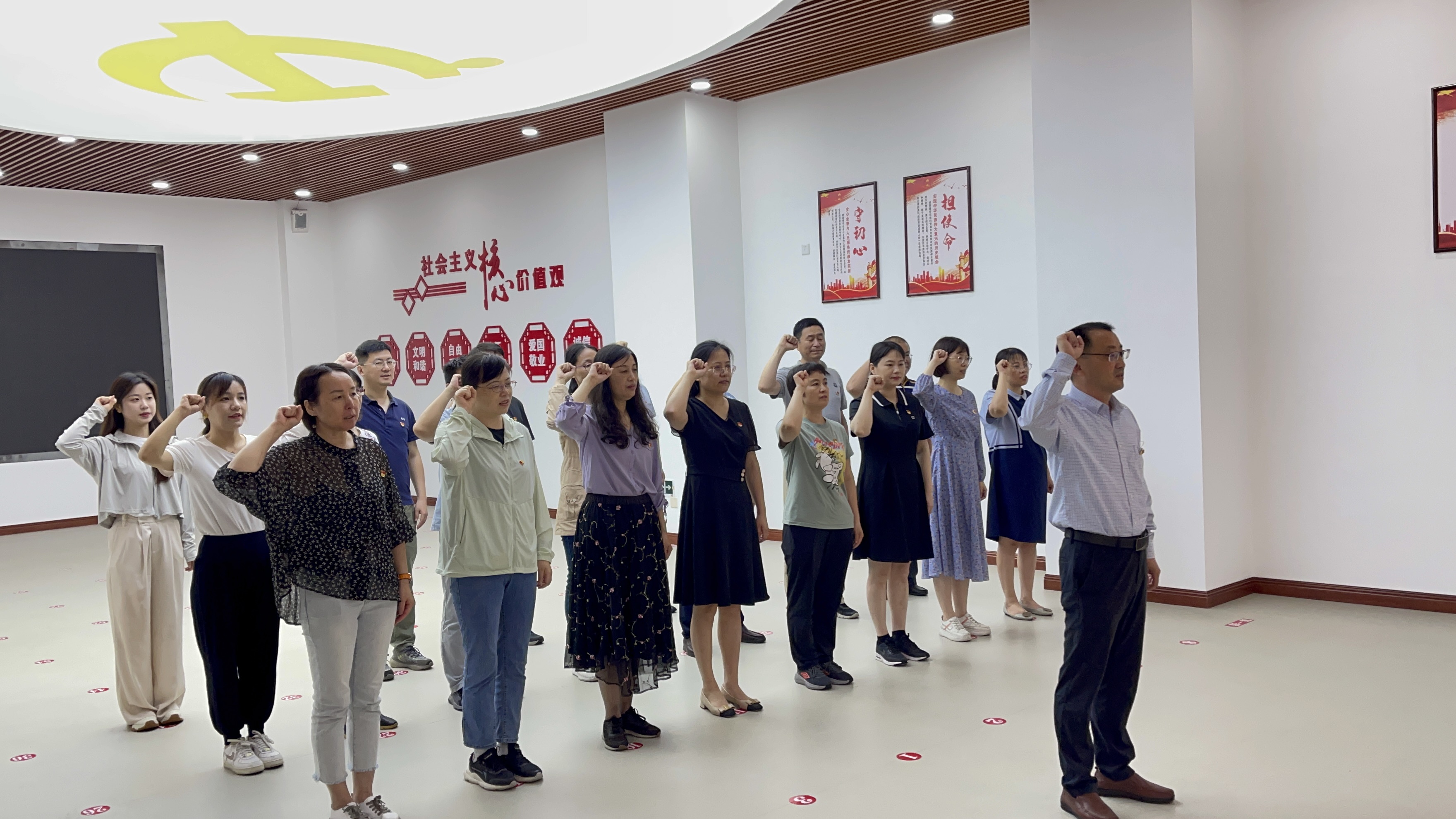 在六安市委党校独山分校宣誓室,黄学武带领全体党员在庄严的党旗下,一起重温了入党誓词。
