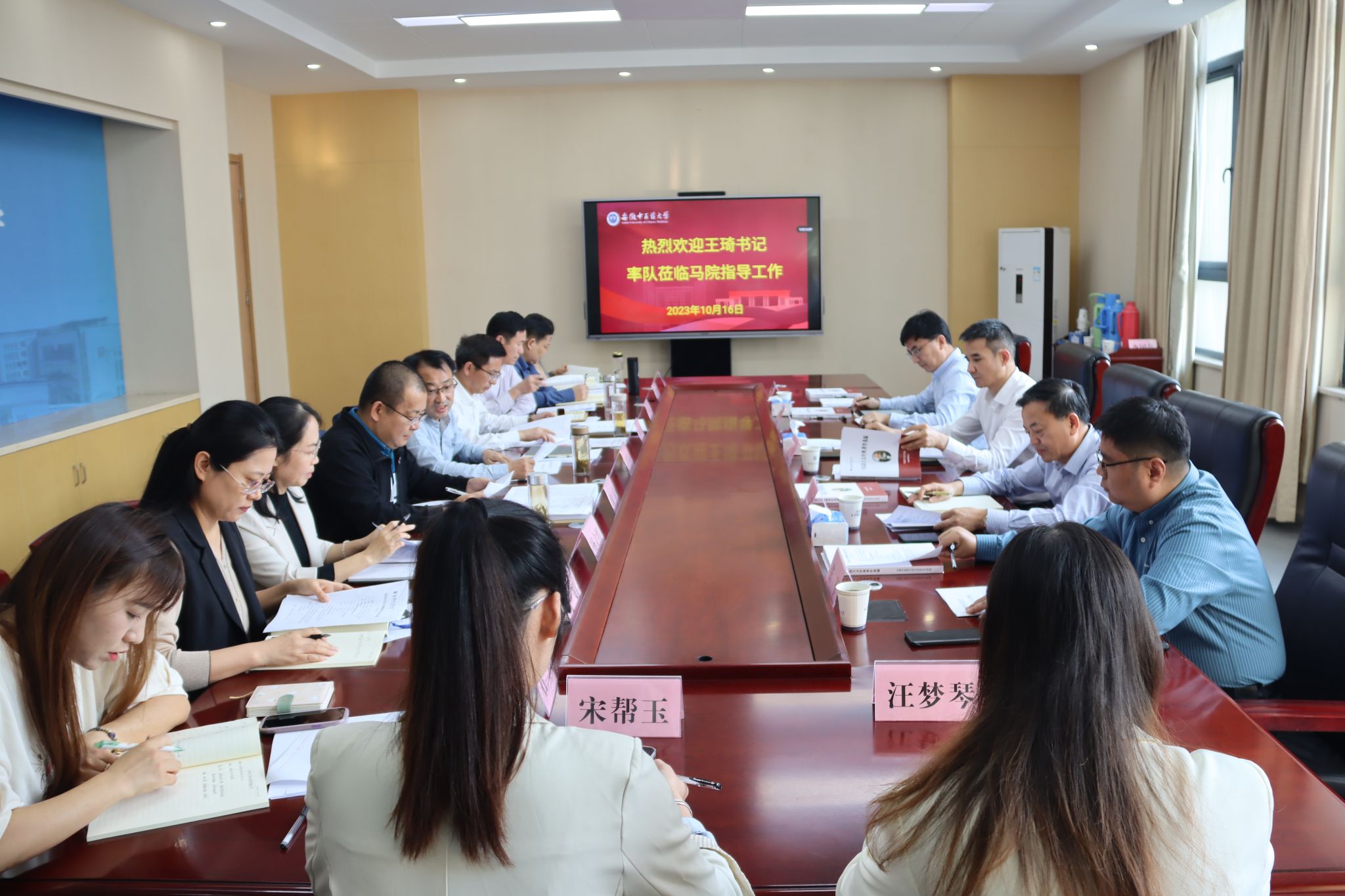 为了推动《普通高等学校马克思主义学院建设标准(2023年版)》的贯彻执行,10月16日下午,学校党委书记王琦率学校办公室、宣传部、人事处、总务处等部门负责同志到马克思主义学院调研指导,学校党委常委、宣传部部长吴达武陪同。马克思主义学院班子成员、党支部书记、学院学术委员会和教学委员会主任、学生代表参会。马克思主义学院党总支书记黄学武主持调研座谈会。