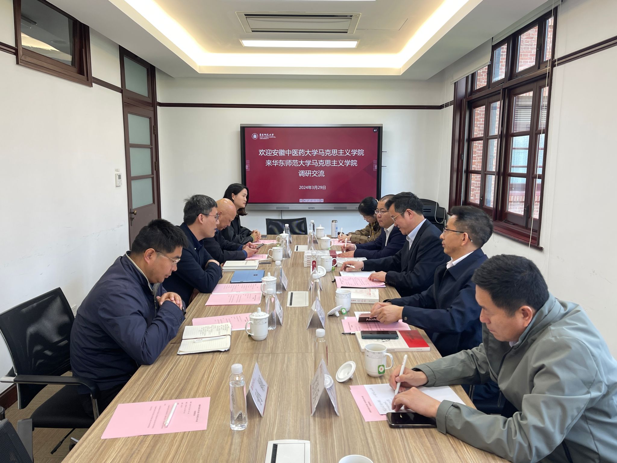 罗绍明对华东师范大学的热情接待和经验介绍表示感谢,他指出华东师范大学是长三角地区高水平大学、华东师范大学马克思主义学院是全国重点马院,在党建与业务融合发展、师资建设、学科建设、课程建设等方面发挥重要引领作用,为我校推进安徽省重点马院建设提供了新的建设经验和思路。董玉节介绍了我校马克思主义学院建设情况。