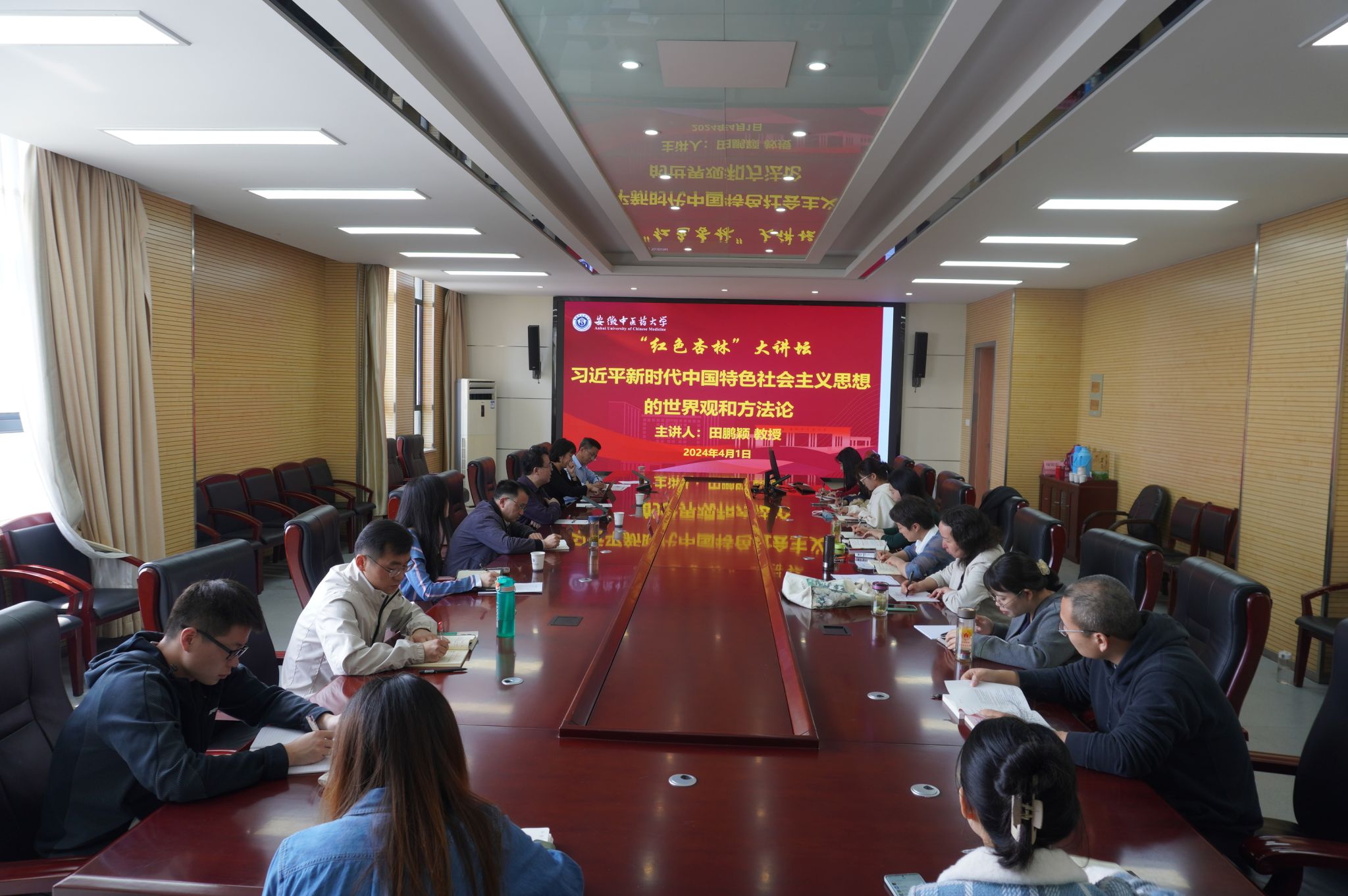 田鹏颖教授从理论精髓、生成机制、理论基础三个层面,系统阐述了如何从整体上把握习近平新时代中国特色社会主义思想的世界观和方法论,为学院师生呈现了一场精彩的思想盛宴。他指出,正因为始终沿着马克思主义世界观和方法论的逻辑理路,守辩证唯物主义和历史唯物主义之正,创理论与实践良性互动之新,做到了用真理的精神追求真理,用科学的态度对待科学,因此才有“两个结合”和“六个必须坚持”,才有了贯穿习近平新时代中国特色社会主义思想的立场、观点、方法。