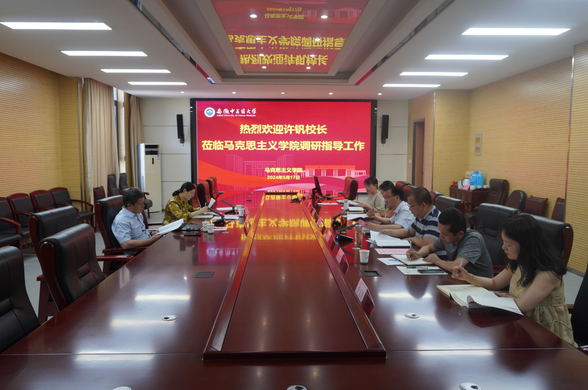 正值全国上下深入学习贯彻习近平总书记对学校思政课建设作出的重要指示精神和新时代学校思政课建设推进会决策部署之际。5月17日,学校党委副书记、校长许钒到马克思主义学院进行调研指导,党委宣传部部长叶兰兰陪同调研。马克思主义学院党总支书记黄学武、副院长郭跃及部分干部教师代表参加调研座谈。黄学武主持会议。