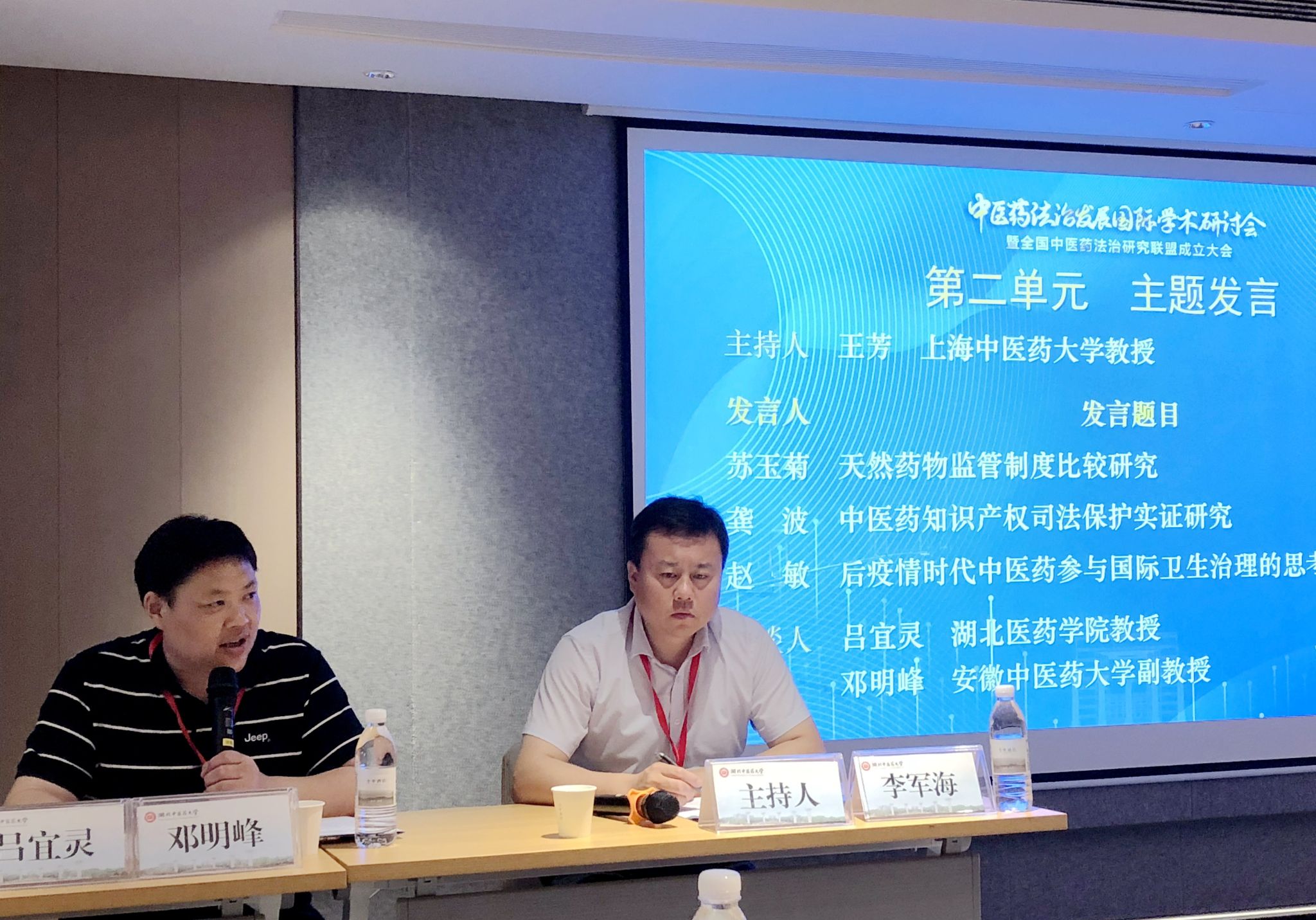 研讨会以习近平新时代中国特色社会主义思想为指导,深入贯彻落实习近平法治思想,汇集有志于中医药法治研究的各界同仁的智慧与力量,共同推进中医药法为核心的中医药法治建设与发展,共同研讨如何通过法治建设助力中医药自身的传承创新发展、中医药与西医药的协同合作发展、中医药知识产权制度的创新发展等一系列重大问题;共同探索如何通过法治途径进一步促进中医药服务经济社会发展、贡献卫生经济增长等重大课题,为我国中医药事业的健康发展提供法治方面的支撑性、保障性服务。学院王华副教授、邓明峰副教授参加会议,邓明峰作为与谈人,就“天然药物监管制度比较研究、中医药知识产权司法保护实证研究、后疫情时代中医药参与国际卫生法理的思考”作了发言与点评。(王华/文图 黄学武/审核 )
