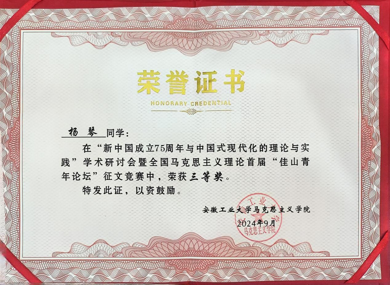 9月21日,“新中国成立75周年与中国式现代化的理论与实践”学术研讨会暨全国马克思主义理论首届“佳山青年论坛”在安徽工业大学举行。本次论坛以“新中国成立75周年与中国式现代化的理论与实践”为主题,来自全国90余所院校和科研机构的专家学者、师生代表齐聚一堂。我院副院长郭跃、研究生杨琴参加了探讨会。