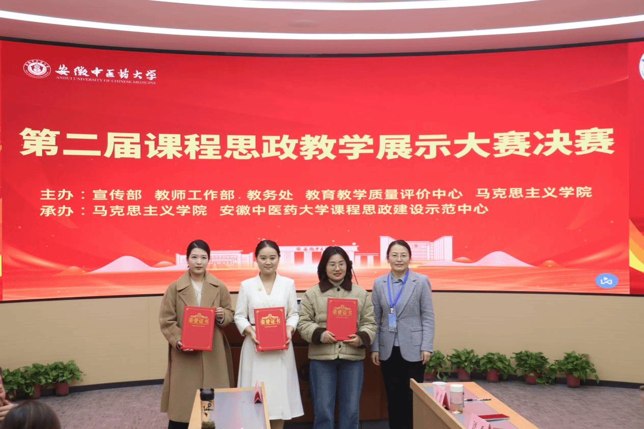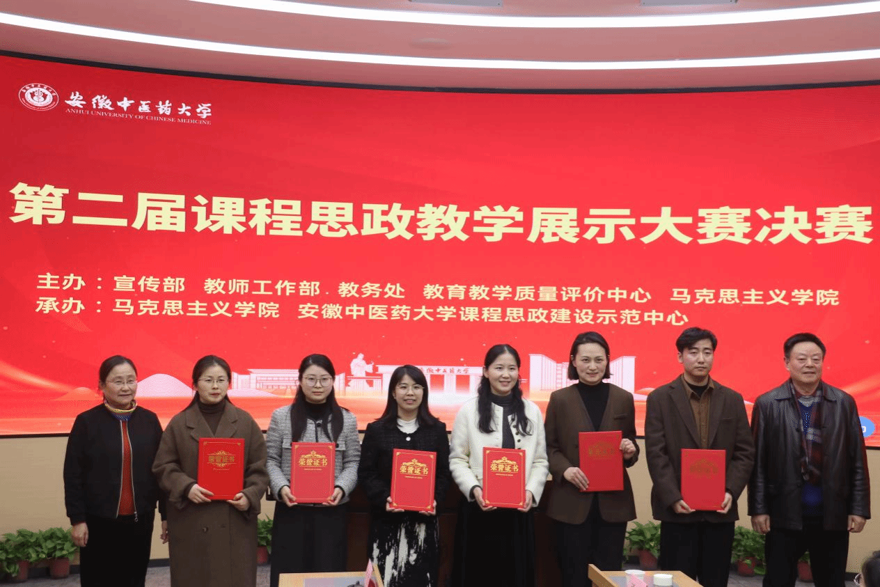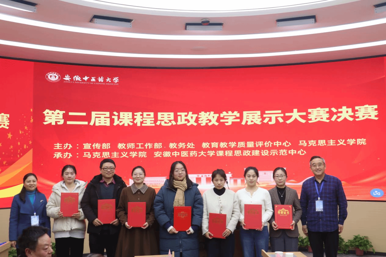 经过各学院选拔推荐,全校共20名教师参加决赛。经专家评委的现场综合评分,针灸推拿学院余情老师获特等奖,中西医结合学院卜妍红老师、护理学院李苗苗老师、药学院陈娟老师获一等奖,护理学院王畅老师、第二临床医学院周朦朦老师、人文与国际教育交流学院王菡文老师、中西医结合学院甄毅岚老师、医药信息工程学院徐志鹏老师、第二临床医学院程晓嫚老师获二等奖。