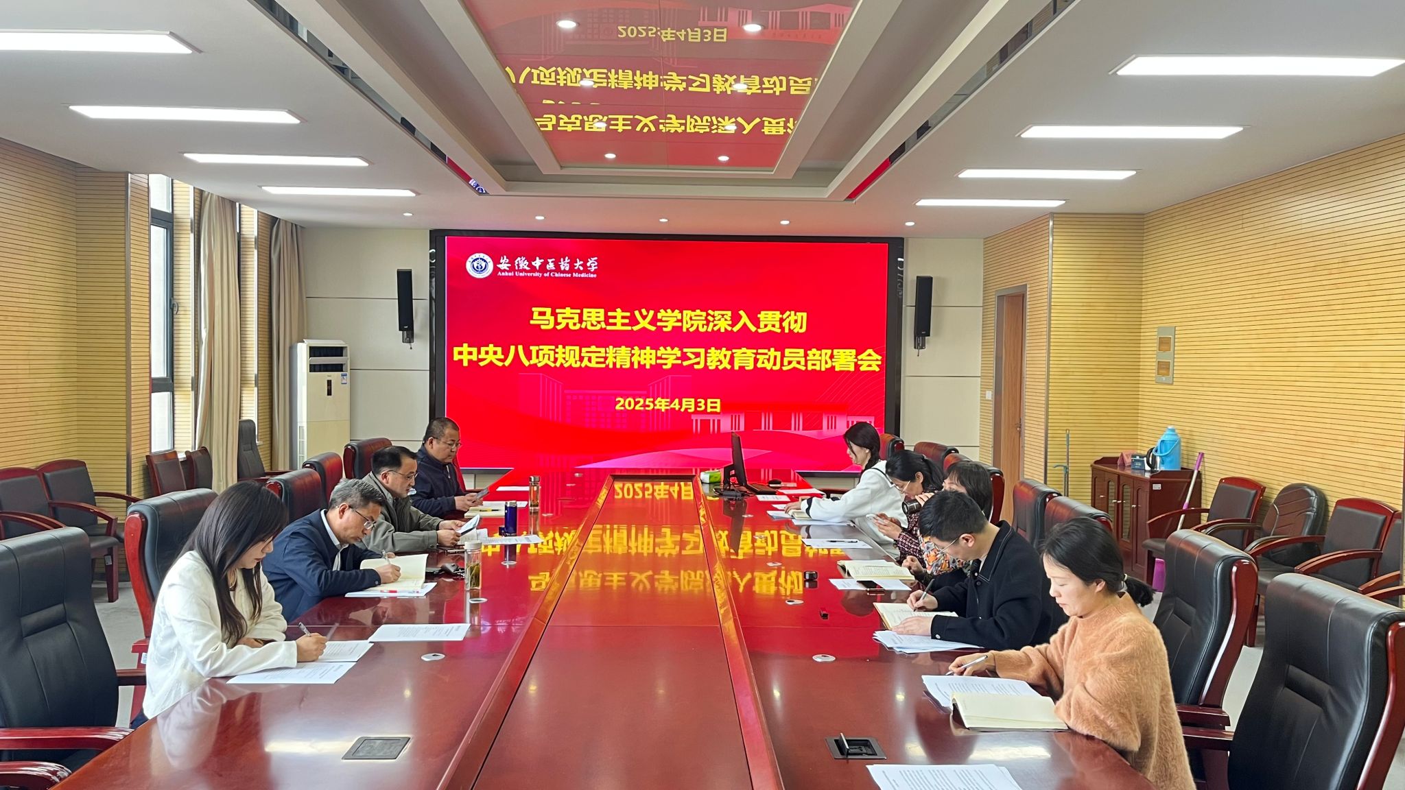 会上,与会同志重点学习了习近平总书记关于加强党的作风建设的重要论述(摘编),传达学习中央党的建设工作领导小组会议部署要求、中共中央办公厅《关于在全党开展深入贯彻中央八项规定精神学习教育的通知》主要精神,传达学习了学校党委《关于在全校开展深入贯彻中央八项规定精神学习教育的通知》部署安排,审议了马克思主义学院深入贯彻中央八项规定精神学习教育工作方案。