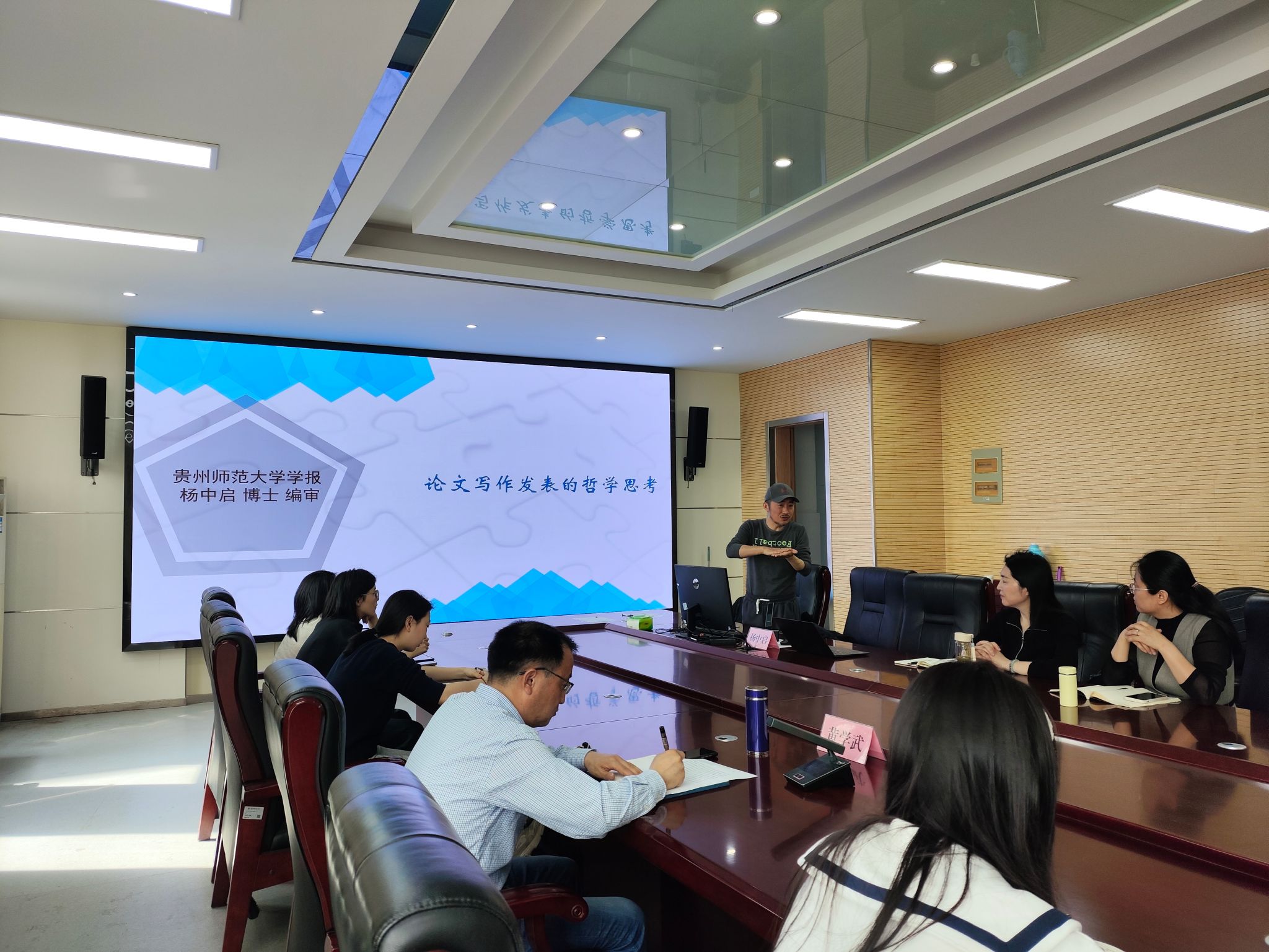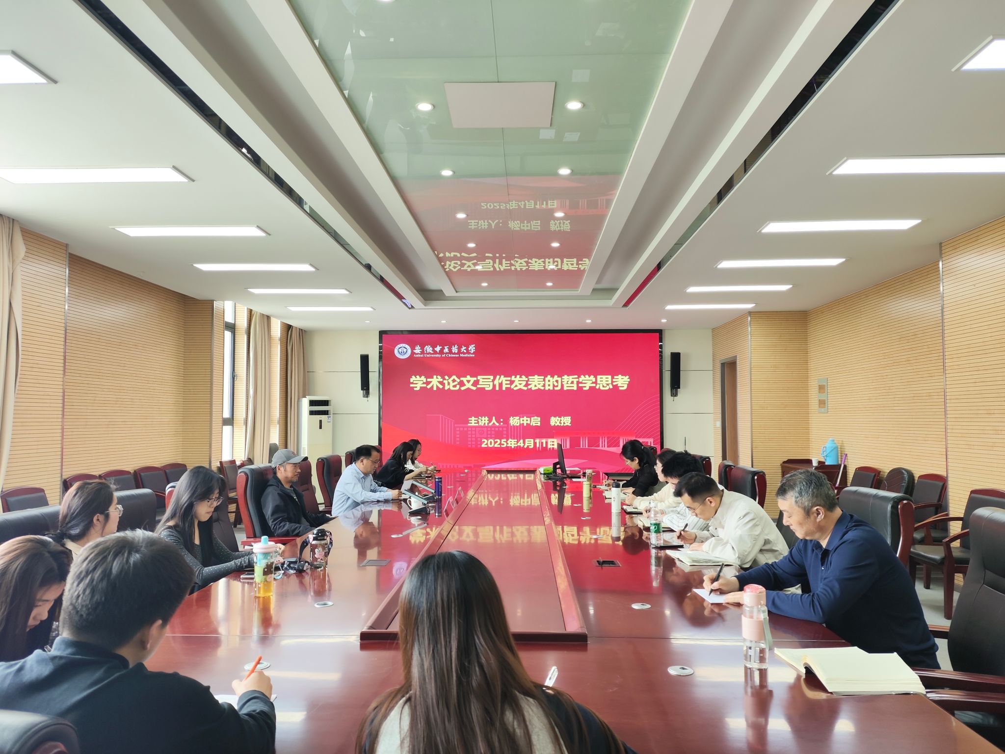 为进一步提升师生科研能力与学术素养,探讨学术论文写作的深层逻辑与实践路径。4月11日上午,马克思主义学院特邀贵州师范大学杨中启教授作题为《学术论文写作发表的哲学思考》辅导讲座。讲座由学院党总支书记黄学武主持,全校人文社科领域师生30余人参加。