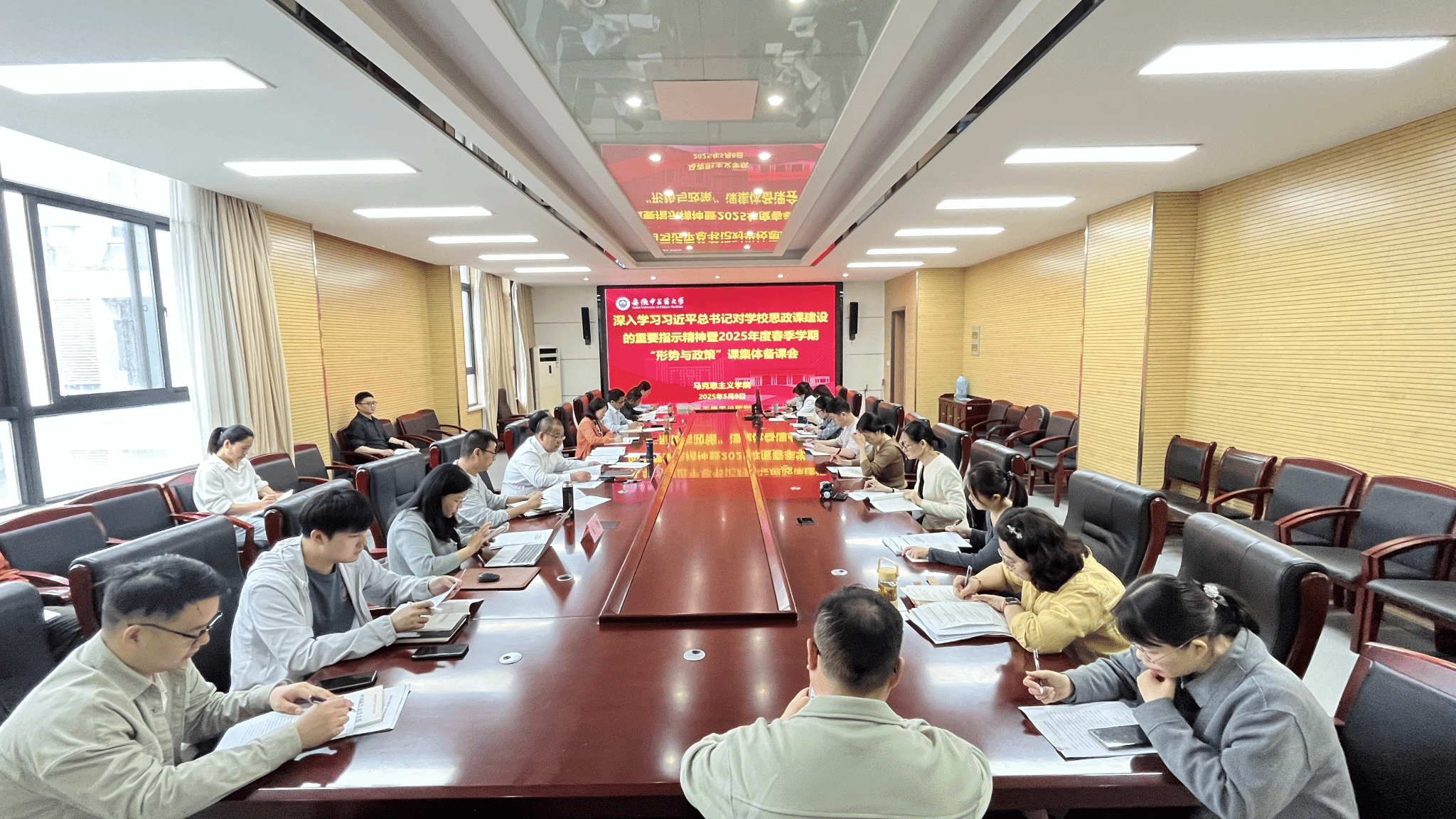 2024年5月11日,新时代学校思政课建设推进会在北京召开,习近平总书记对学校思政课建设作出重要指示。值此一周年之际,为深入学习贯彻习近平总书记重要指示精神,不断推动思政课改革创新,切实提高“形势与政策”课教育教学质量,5月8日上午,学校召开深入学习习近平总书记对学校思政课建设的重要指示精神暨2025年度春季学期“形势与政策”课集体备课会。学校党委常委、副校长桂双英教授,马克思主义学院班子成员,“形势与政策”课专兼课教师参加了集体备课会。