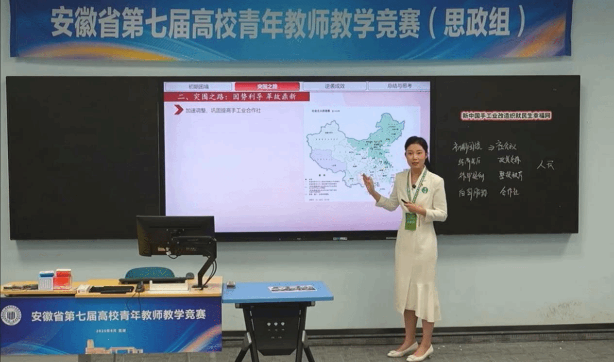 8月8日,由安徽省总工会、安徽省教育厅主办,安徽省教科文卫体工会、安徽省教育厅高等教育处承办,安徽工程大学、芜湖市总工会协办的安徽省第七届高校青年教师教学竞赛决赛圆满落幕。来自全省52所院校的211名青年教师代表参加本次竞赛决赛,经过激烈角逐,我院李秋晨老师荣获思政组一等奖。同时,这也是李秋晨老师本年度斩获全国第五届高校教师教学创新大赛安徽赛区一等奖后,再次获得教学比赛的重要奖项。
