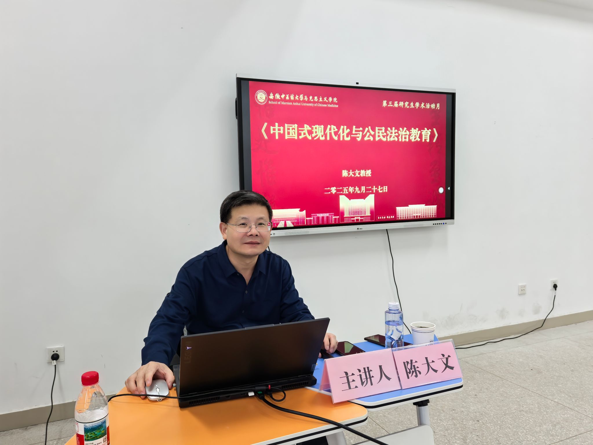 为深刻领会中国式现代化的核心要义,进一步强化研究生群体的法治观念,提升其理论联系实际的能力,9月27日下午,马克思主义学院于研究生智慧教室379成功举办专题学术讲座。本次讲座特邀同济大学长聘教授、国家级教学名师陈大文,围绕“中国式现代化与公民法治教育”主题展开深度解读。马克思主义学院全体研究生参加,讲座由学校党委常委、宣传部部长、马克思主义学院院长董玉节主持。