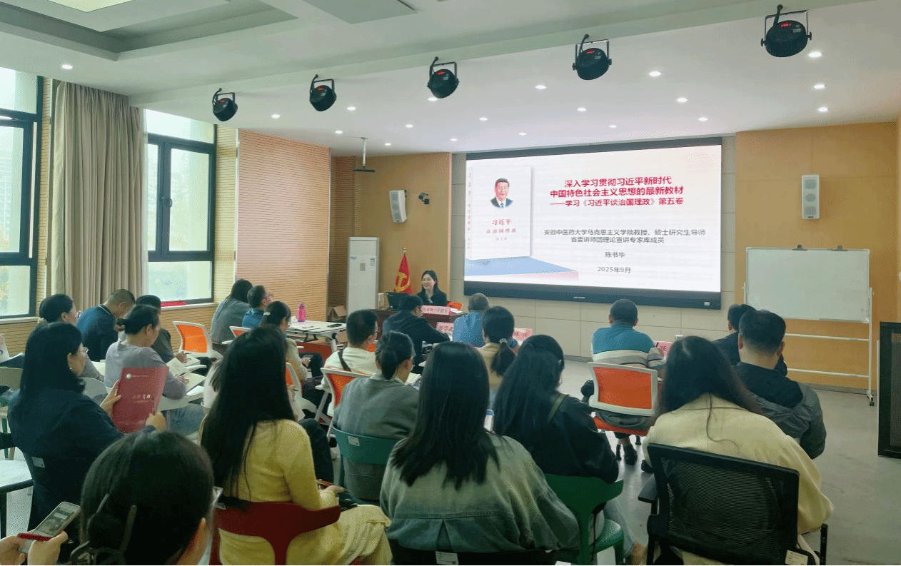 为贯彻落实中央宣传部、中央组织部印发的《关于认真组织学习〈习近平谈治国理政〉第五卷的通知》部署要求,10月15日下午,马克思主义学院党总支联合总务处直属党支部举办学习领会《习近平谈治国理政》第五卷专题辅导会,邀请马克思主义学院教授、省委讲师团理论宣讲专家库成员陈书华作专题辅导报告。马克思主义学院全体教职工及总务处全体党员参加会议,马克思主义学院党总支书记黄学武主持会议。