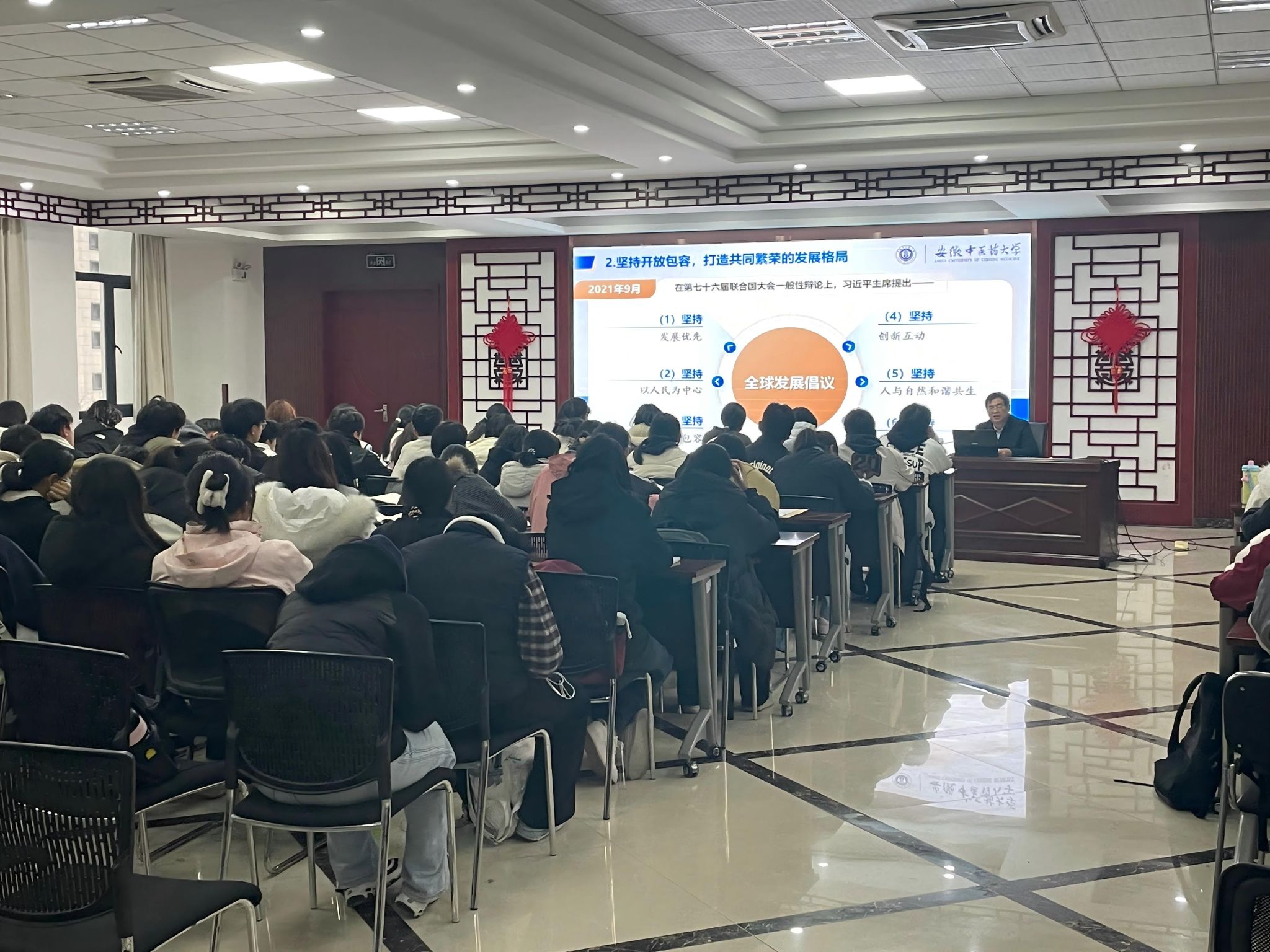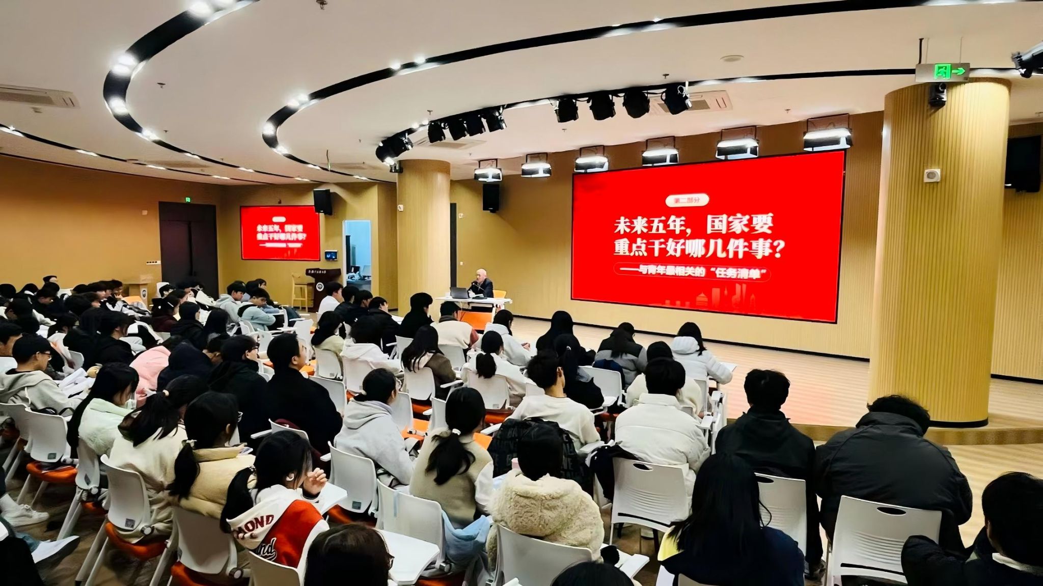 学校党委副书记周新发为中西医结合学院2025级中西医临床医学专业学生讲授题为《谱写中国式现代化青春篇章——深入学习贯彻党的二十届四中全会精神》的形势与政策课。周新发立足学生专业实际,从这是一次什么会?——看懂全会的“导航仪”作用;未来五年,国家要重点干好哪几件事?——与青年最相关的“任务清单”;我们怎么办?——在中国式现代化征程中写下青春注脚三个方面,聚焦科技创新、高质量发展、共同富裕、绿色转型四大重点领域,阐述青年中医学子参与“健康中国”建设的路径,希望大家做潜心学习者、笃行实践者、担当奋斗者。要苦练“内功”,做经典的传承人;拥抱“现代”,做科技的弄潮儿;扎根大地,做人民的“健康员”,将个人理想与国家命运紧密结合,奋力书写无愧于新时代的青春答卷。