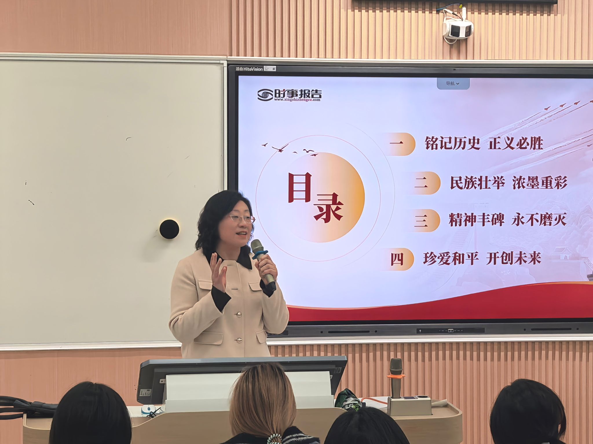 校党委常委、纪委书记、监察专员詹灵杰为针灸推拿学院2025级中医骨伤学专业学生讲授《纪念抗战胜利 坚定民族信念》专题。她从“是不是所有民族都有伟大复兴的机会?”问题导入,引发学生思考并理解中国人民抗日战争胜利与中华民族伟大复兴之间的逻辑关系。授课过程中,詹灵杰带领学生梳理抗日战争关键脉络,阐释抗战胜利的历史意义和其中蕴含的民族精神。她融合中医药专业特色,展现了中医药人全力支持和参与抗战的历史以及中医药发挥的重要作用,勉励学生将个人成长成才与国家发展、民族复兴相联系,勇担岐黄振兴新使命。