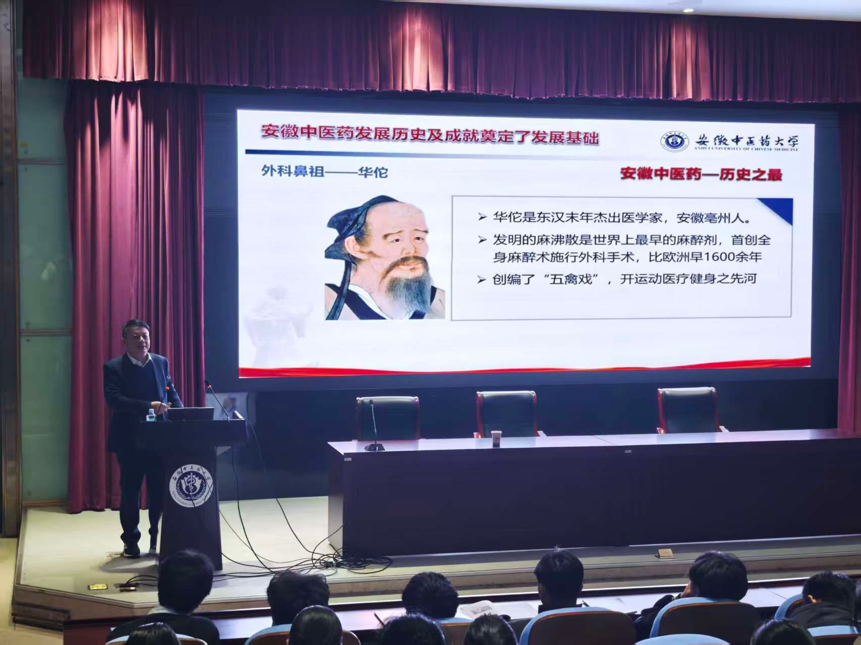 学校党委副书记、校长许钒分别为医药信息工程学院2025级生物医学工程专业和药学院2025级药物制剂专业学生讲授《守正创新 促进中医药高质量发展》专题。许钒在授课中聚焦习近平总书记关于中医药发展的重要论述,立足长三角一体化高质量发展,系统阐述了安徽加速融入长三角中医药一体化发展的历史过程、实践基础、重大成就以及全新机遇等,为学生明晰了安徽中医药事业发展的广阔前景与发展趋势。他指出,新发展阶段,必须要立足安徽中医药资源禀赋与科技创新优势,全面推动数智融合,激发中医药发展新动能,让数智融合成为中医药守正创新的 “加速器”、健康中国建设的 “新引擎”。最后,他从自身经历出发,勉励同学们在今后学习生活中既要敢做选择、敢担当,还要稳住心神、从容前行,更要开放心态、拥抱成长,在传承中突破、在融合中超越,书写中医药现代化、国际化的崭新篇章。