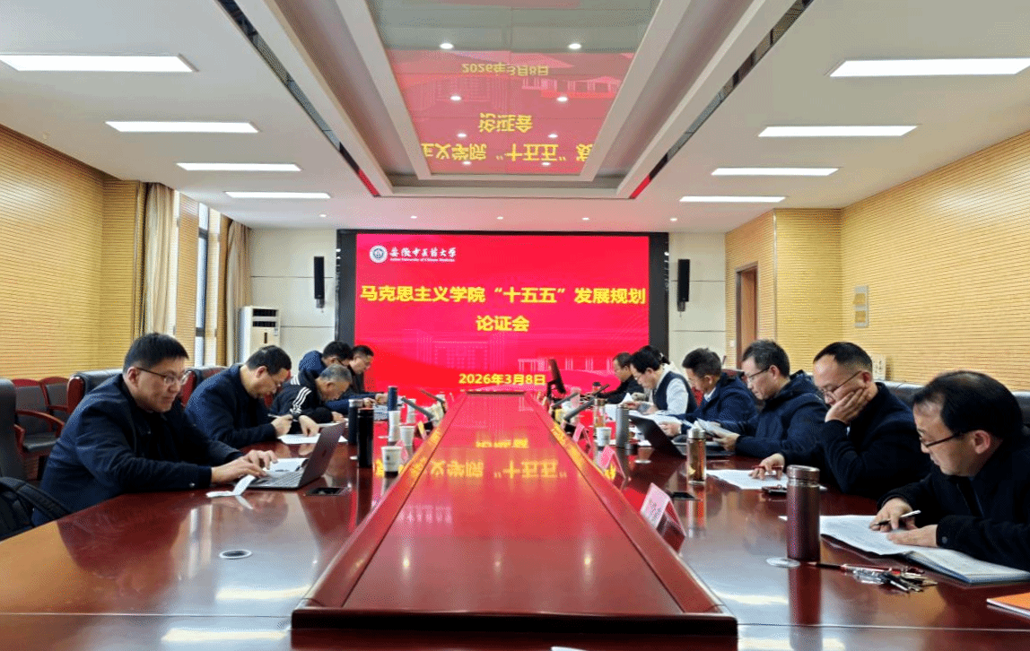 为科学谋划学院“十五五”发展蓝图,明确发展方向、凝练发展特色和提升发展层次,3月8日下午,马克思主义学院召开“十五五”发展规划专家论证会。安徽省高校思政课教指委主任、马克思主义学院王先俊教授,合肥师范学院副校长、博士生导师周端明教授,安徽日报理论部副主任(主持工作)程铁军高级编辑,安徽财经大学马克思主义学院院长张斌教授,安徽医科大学马克思主义学院院长柳泽民教授参加论证会。校党委常委、宣传部部长董玉节,教务处处长尹刚、研究生院院长王鹏、科技处处长汪天明、发展改革处副处长欧金梅参加论证会,会议由学院执行院长郭跃主持。