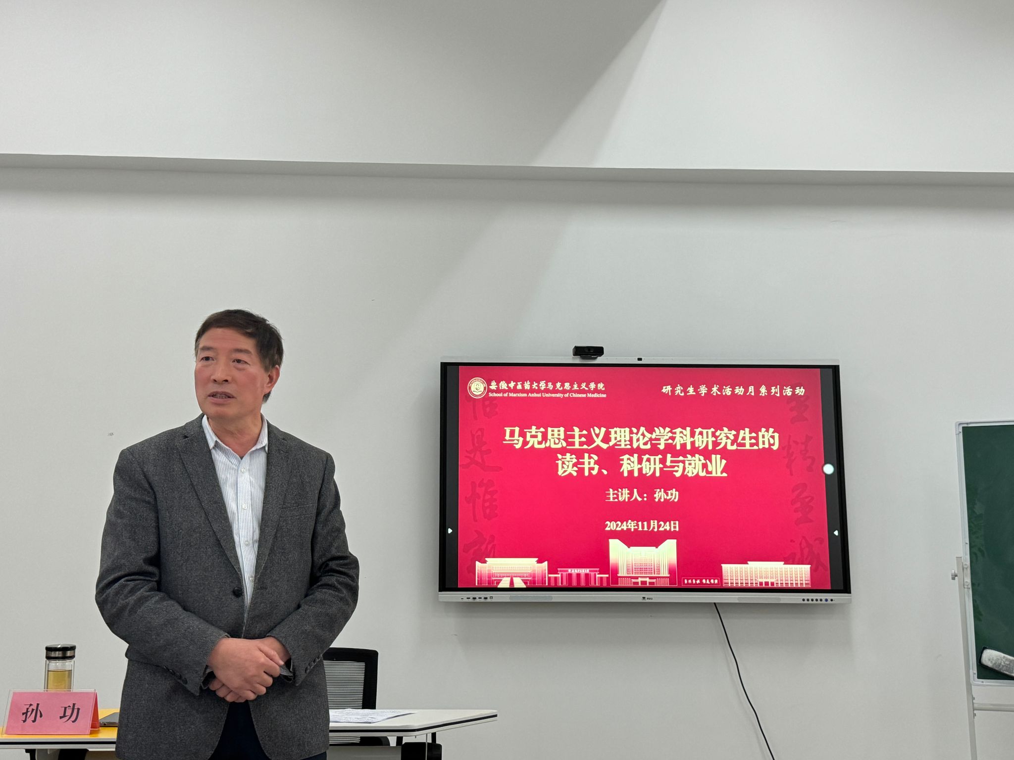 为进一步提升研究生学术写作水平与技巧,增强专业性知识技能,11月24日,学院邀请池州学院马克思主义学院党委书记俞念胜、安徽理工大学学术出版中心主任孙功做客研究生学术月系列活动,为研究生指导学术论文写作。全体马克思主义理论硕士研究生参加,院长董玉节主持。